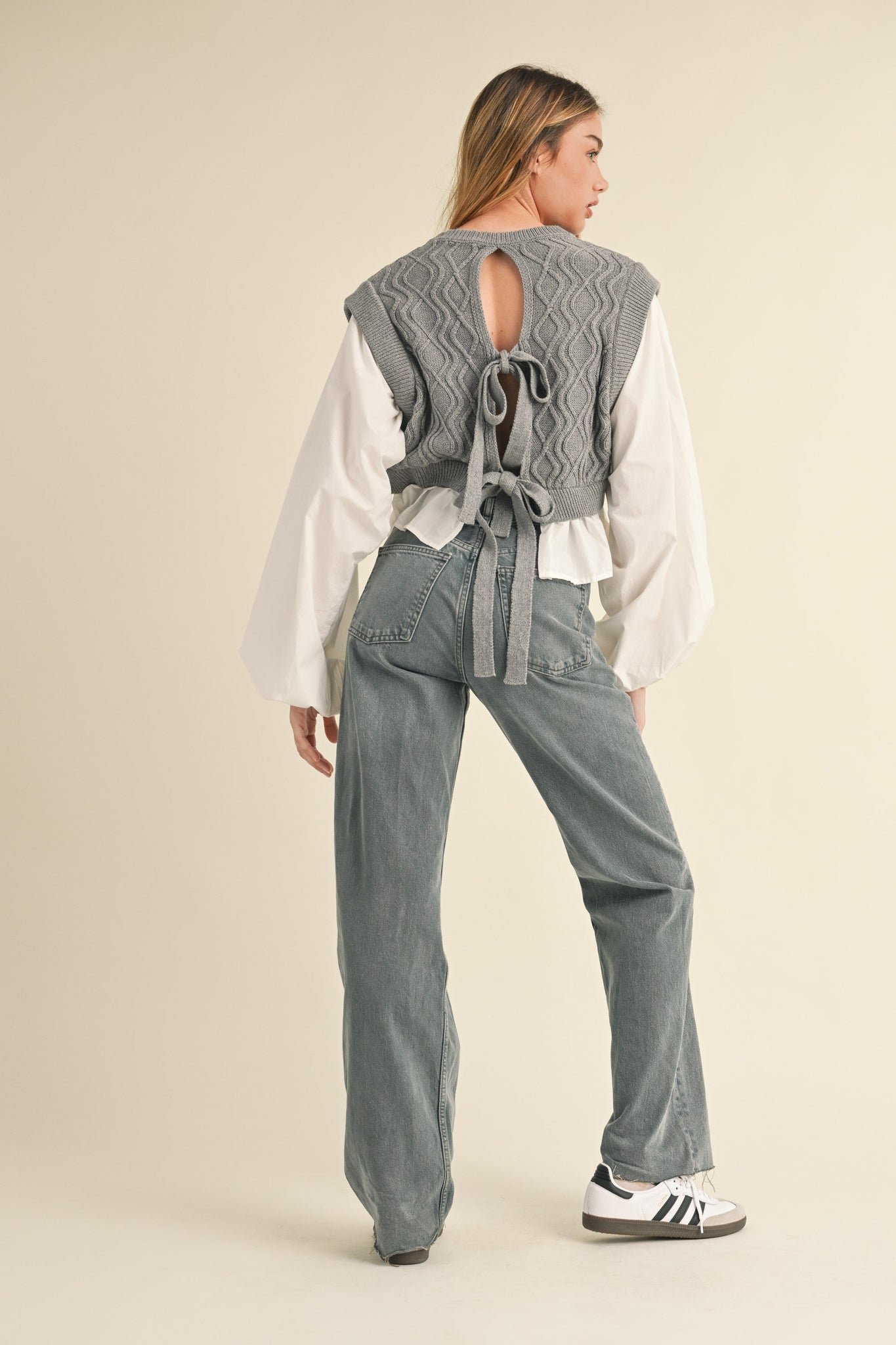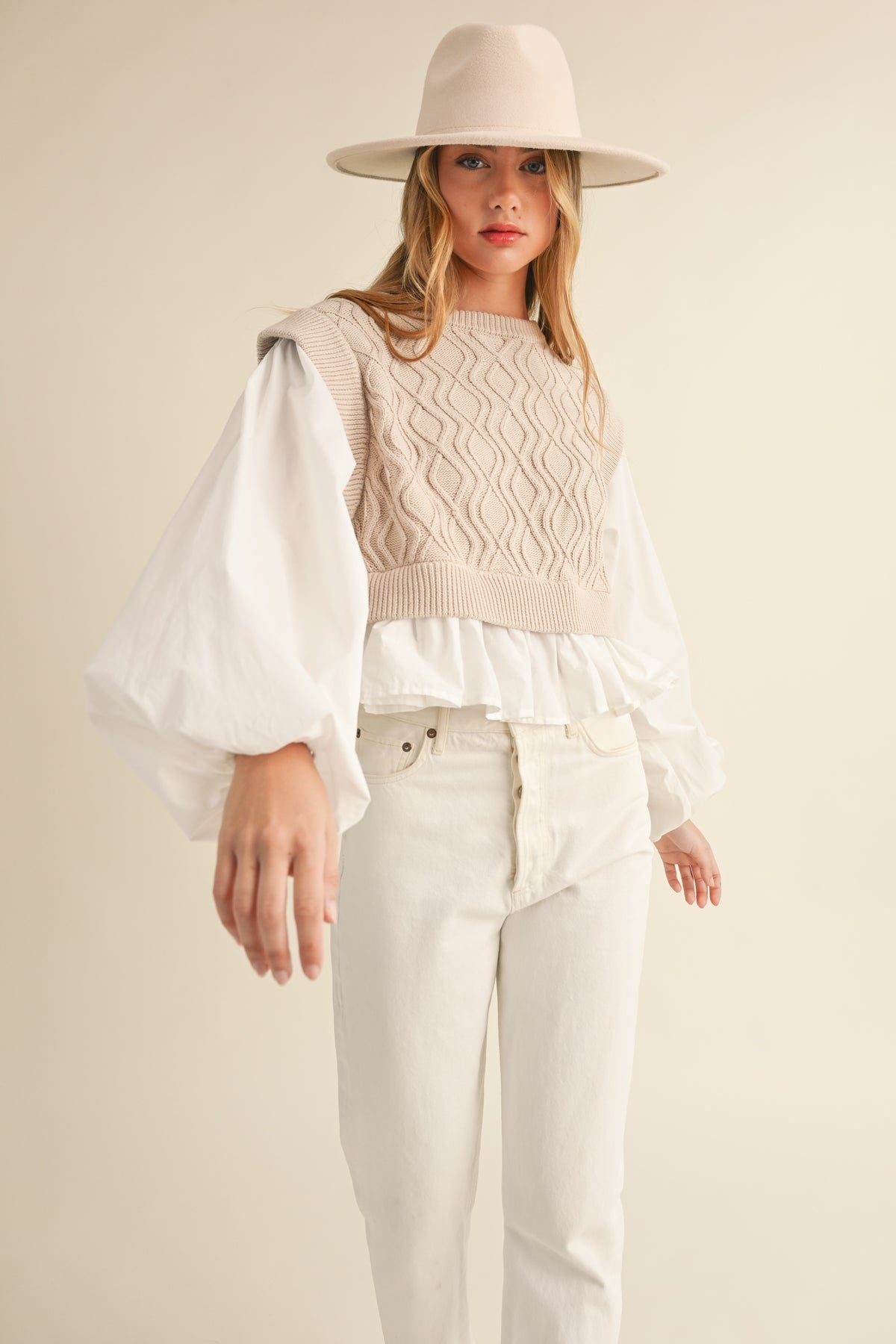 Murphy Knit Balloon Sleeve Top- H Grey