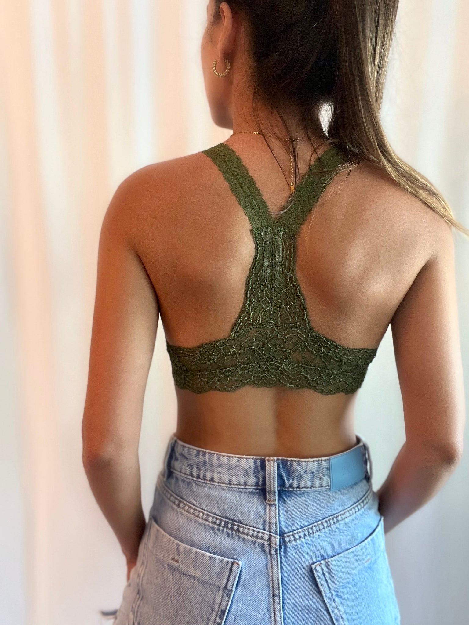 • Load image into Gallery viewer, Lace Racerback Bralette- Olive