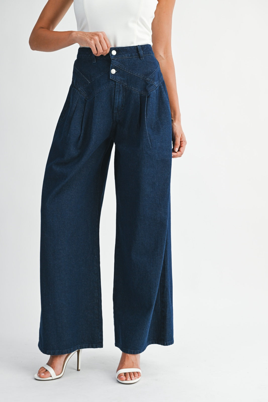 DK Denim High Waist Pintuck Wide Leg Jeans