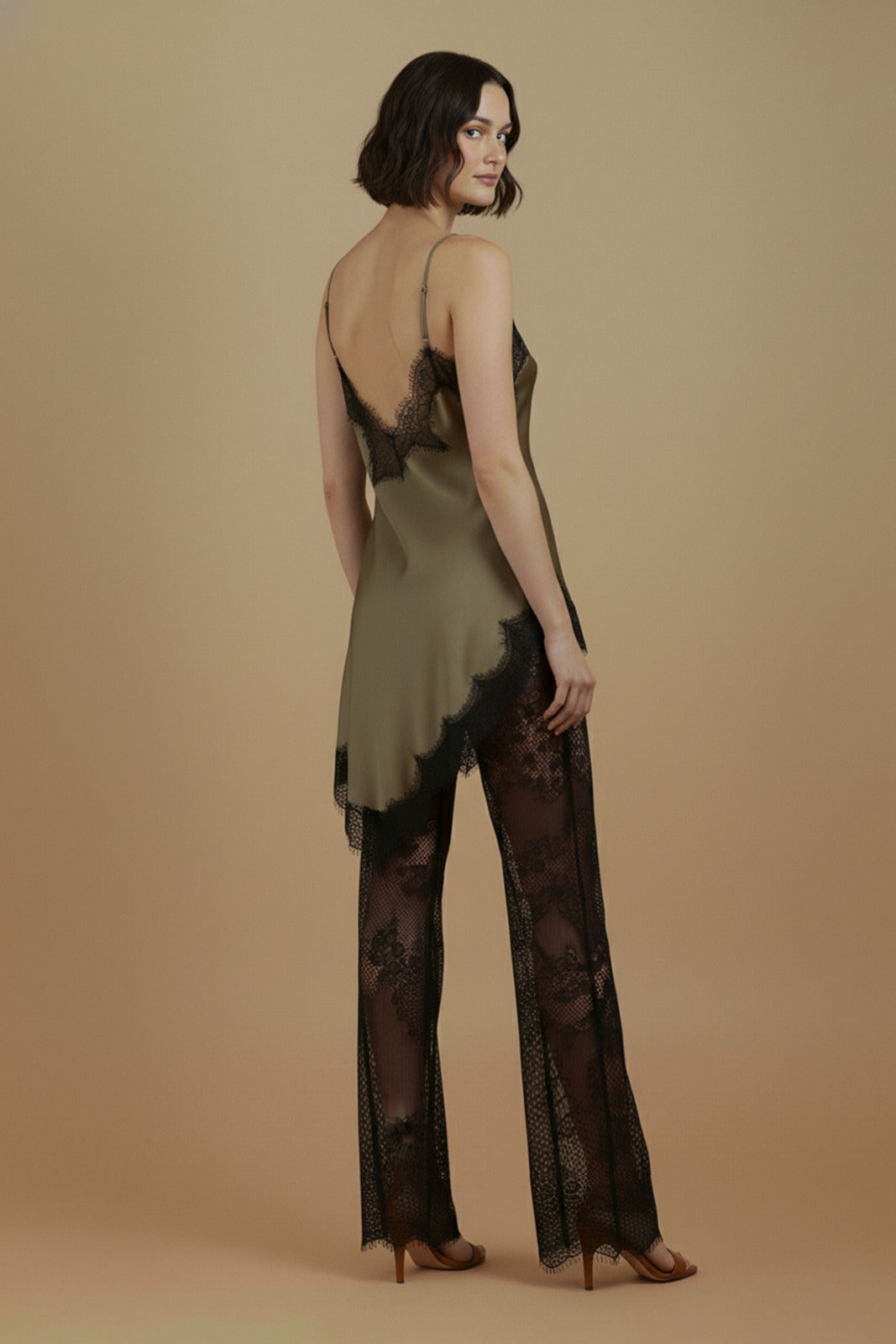 Chocolate Satin Lace Pant Set