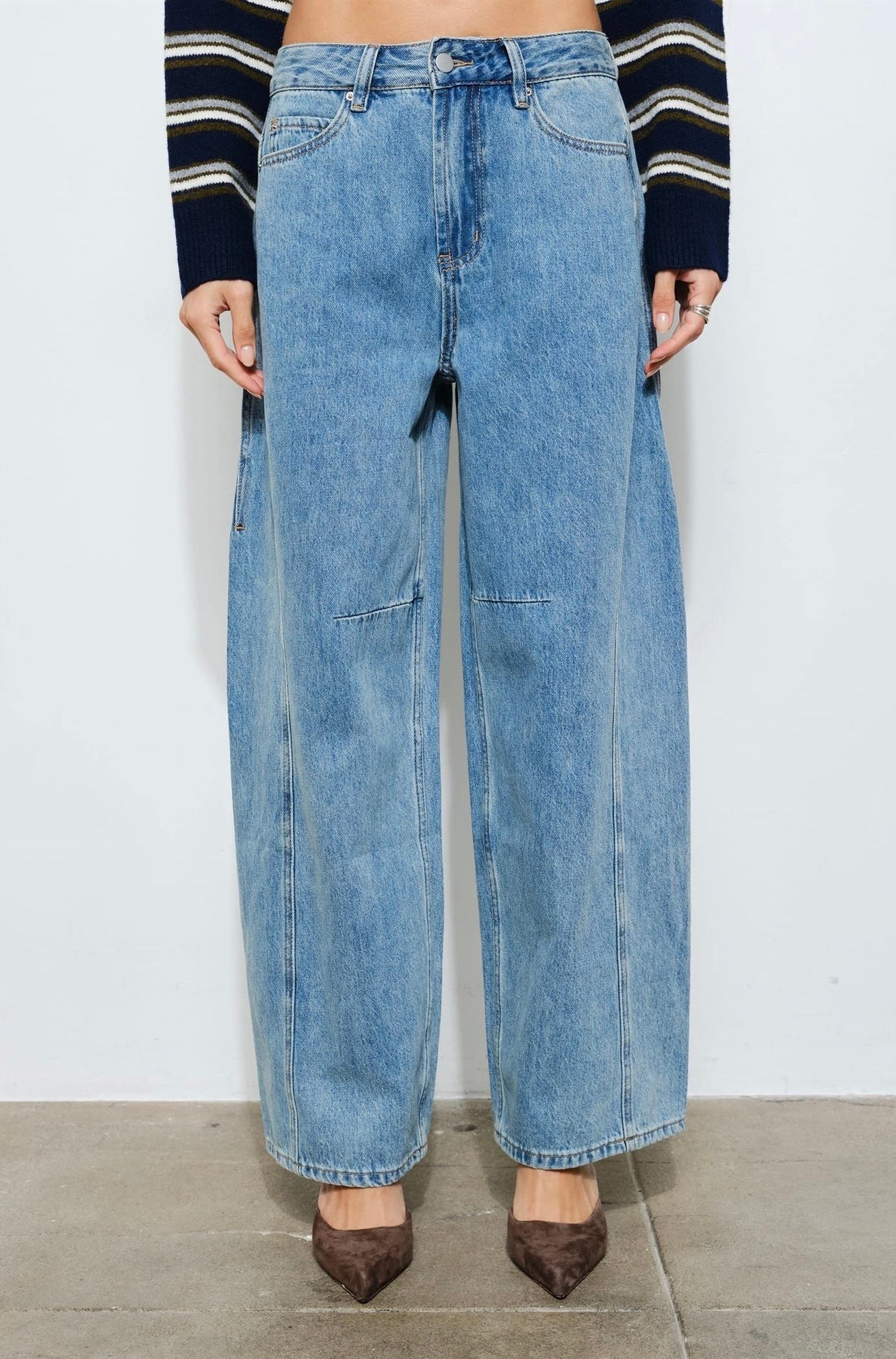 Ultimate Cool Girl Low Rise Denim Pant In Medium Wash.