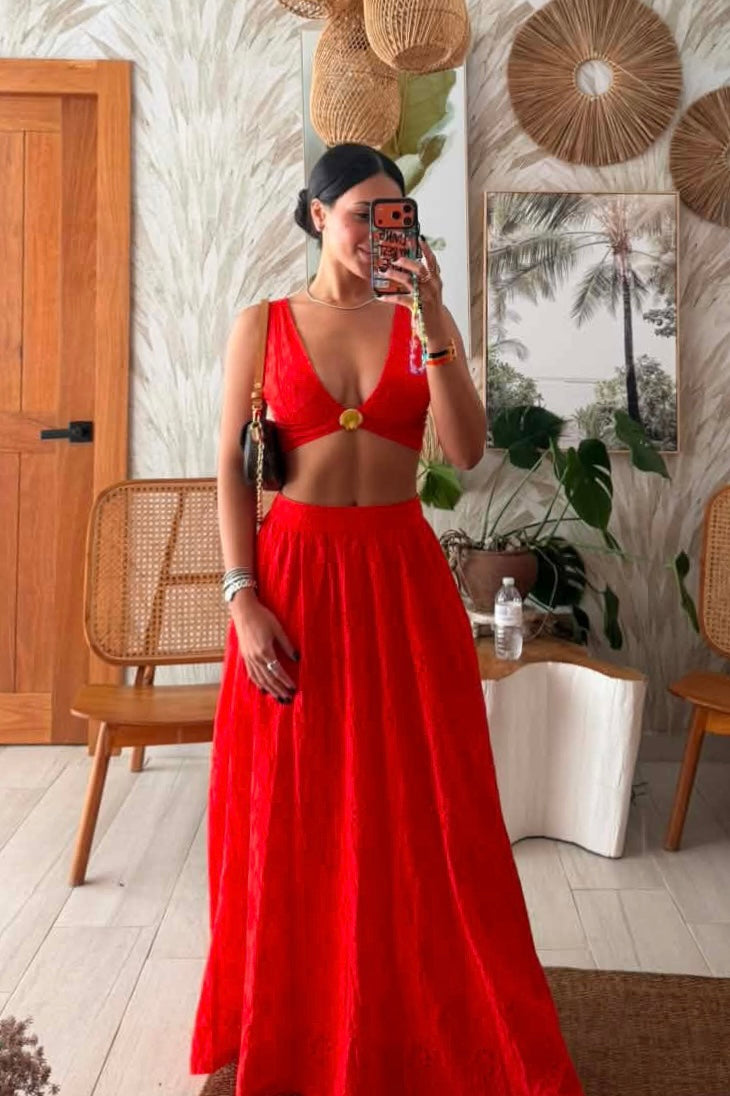 Eyelet Top and Skirt Set