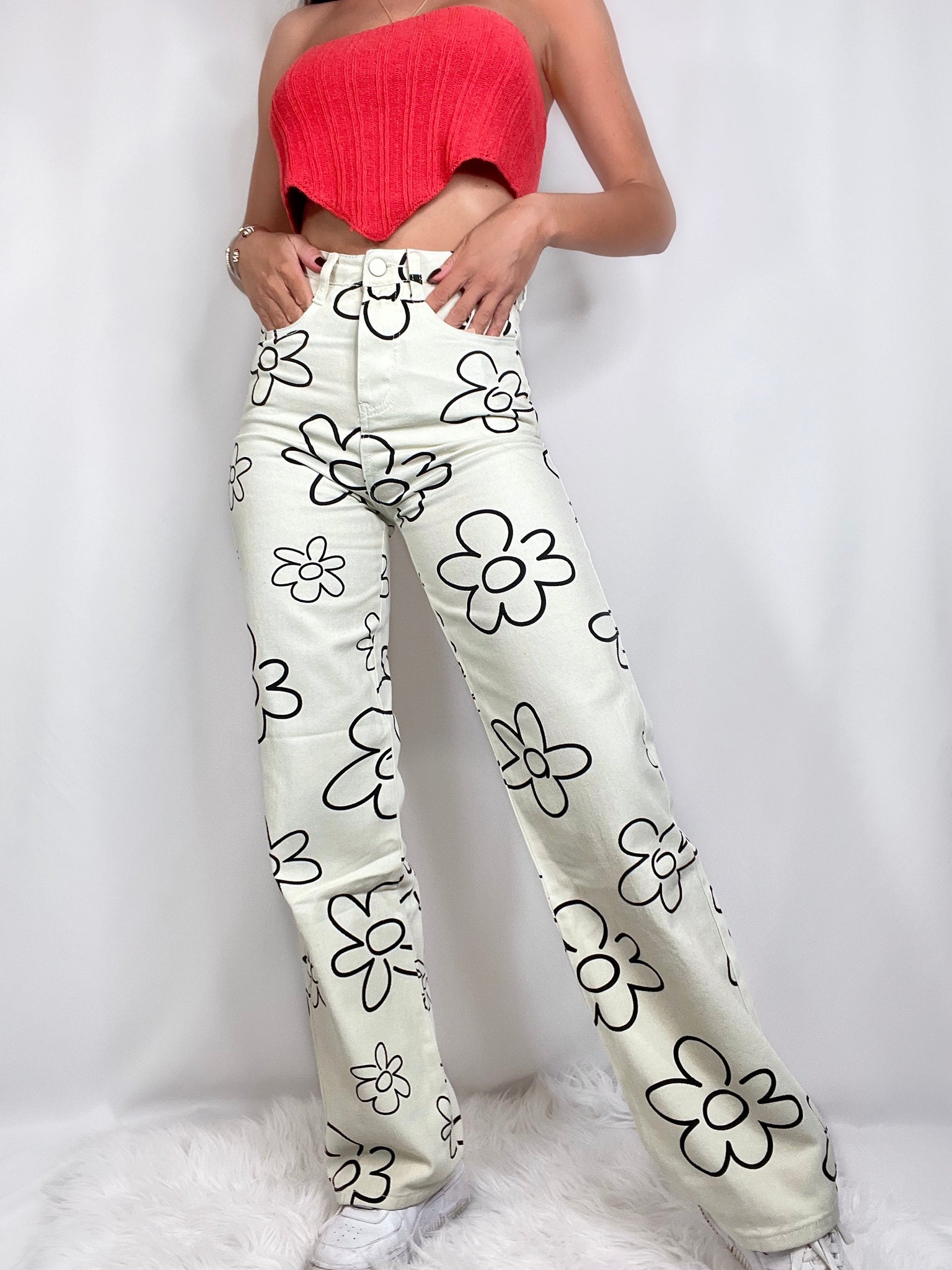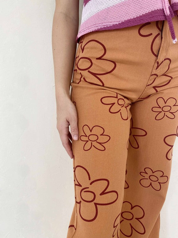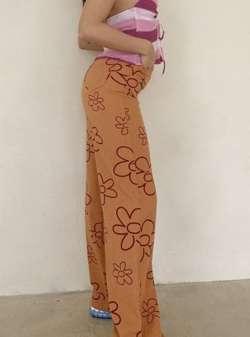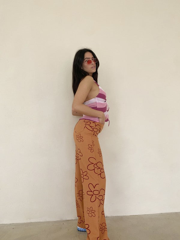 Floral Wide Leg Pant- Peach