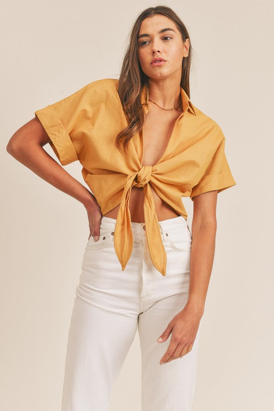 Linen Tie Top- Mustard