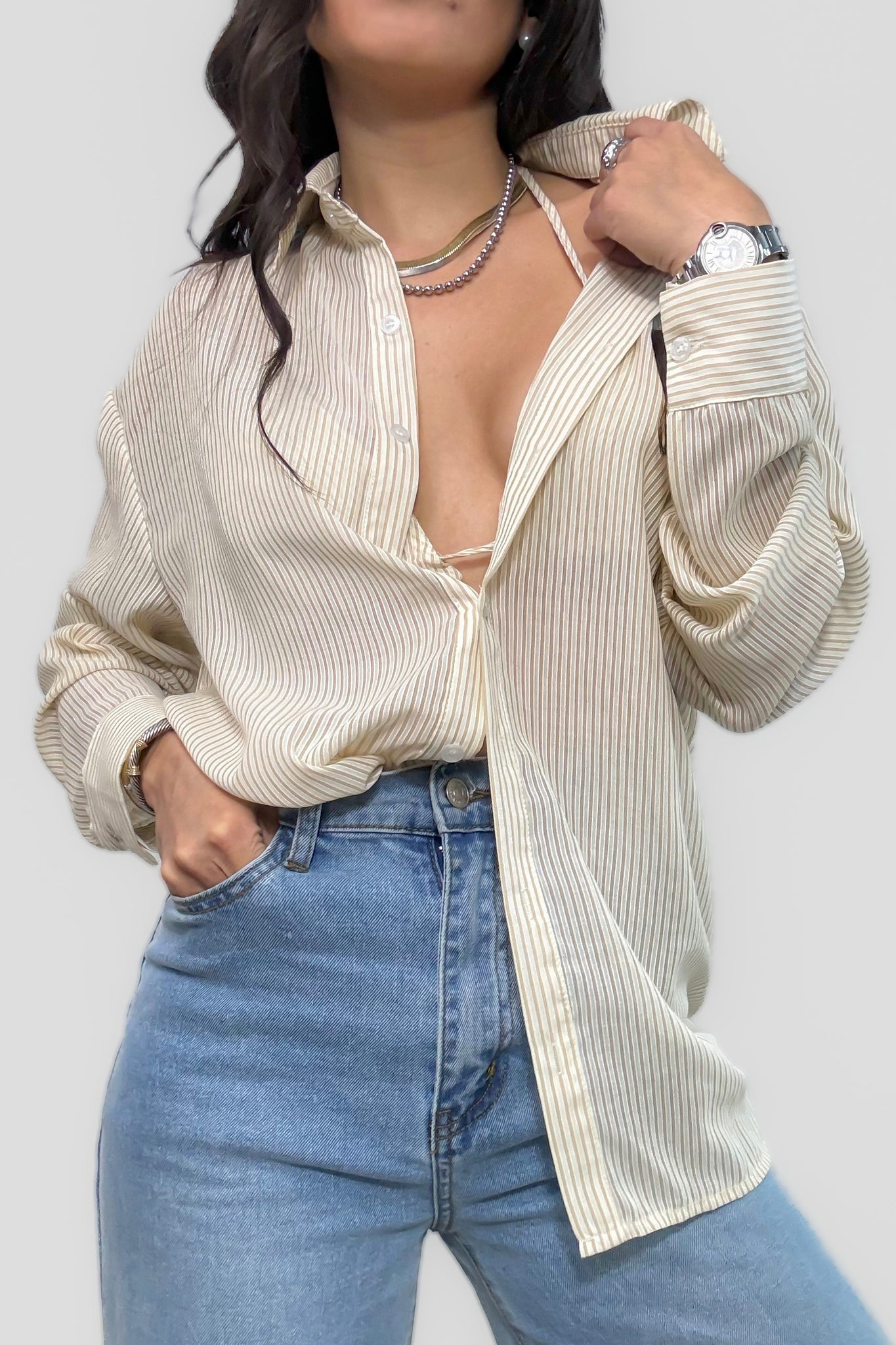 Sheer Button Down Blouse + Bralette Set-Natural Beige